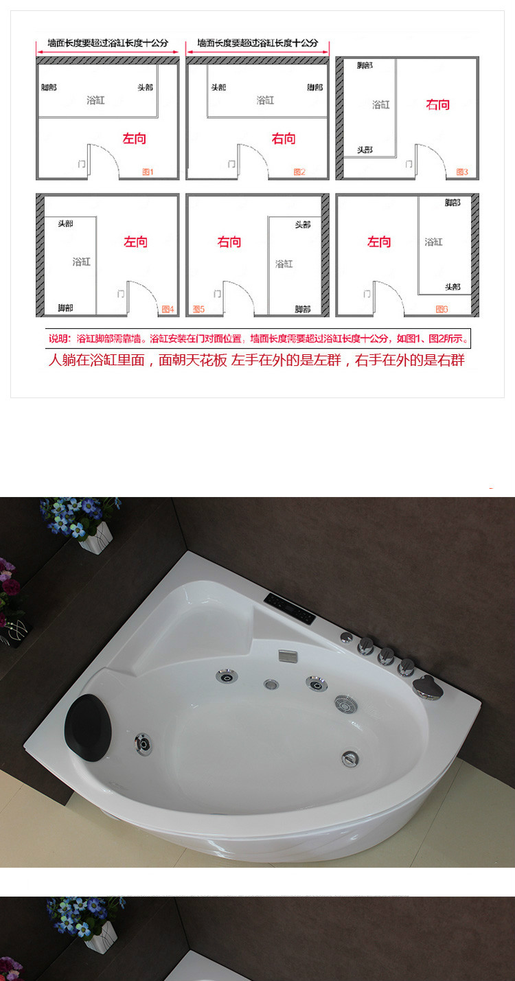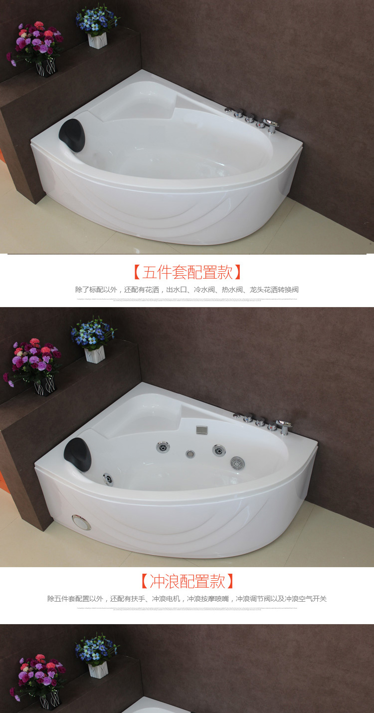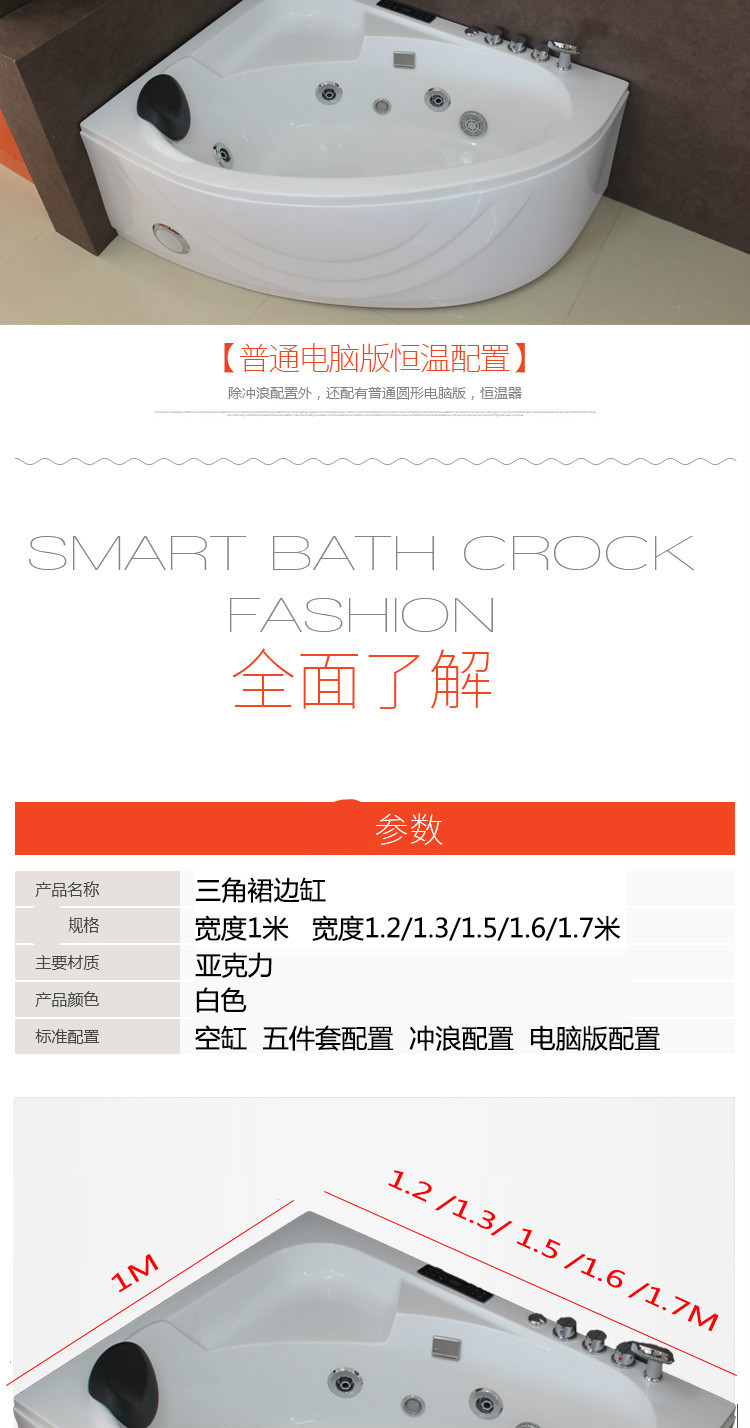 三角形扇形弧形浴缸亚克力独立裙边浴缸按摩冲浪恒温加热浴缸波迷娜BOMINA 恒温电脑版配置 ≈1.7M