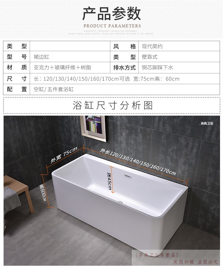 独式立亚力克无缝一体小户型缸浴酒店人成家用间卫生工程浪冲浴缸波迷娜BOMINA