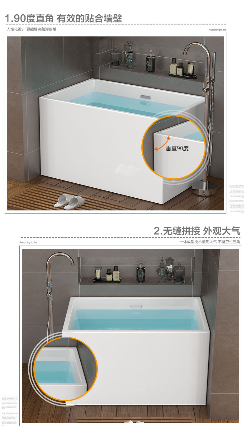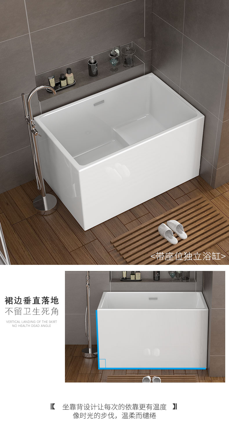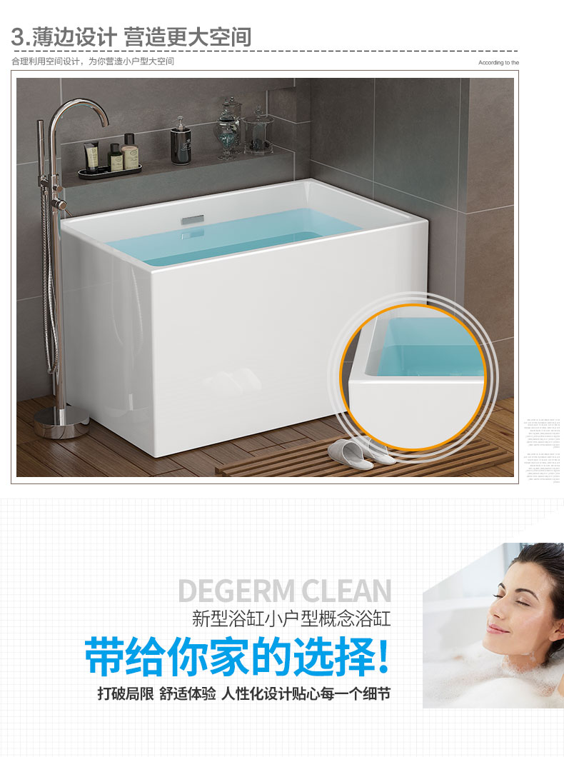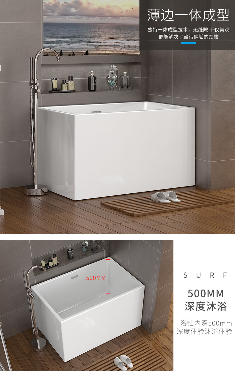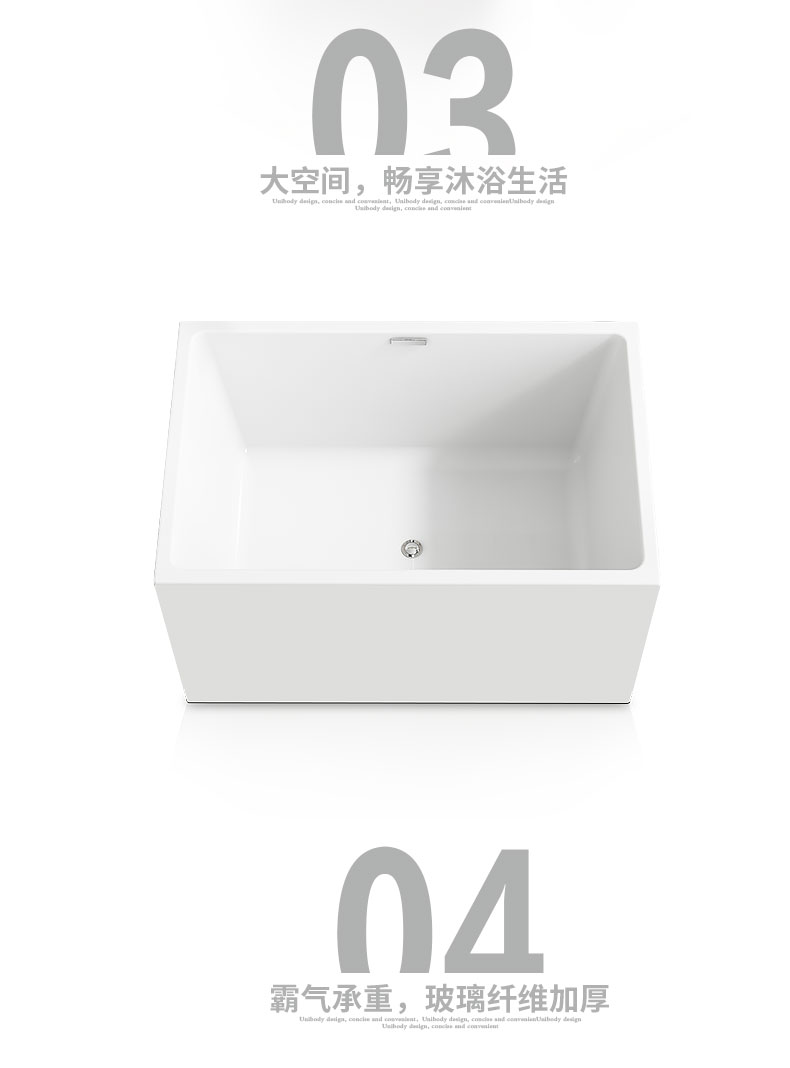 浴缸独立式家用浴池方形浴盆迷你小户型1m-1.4米波迷娜BOMINA
