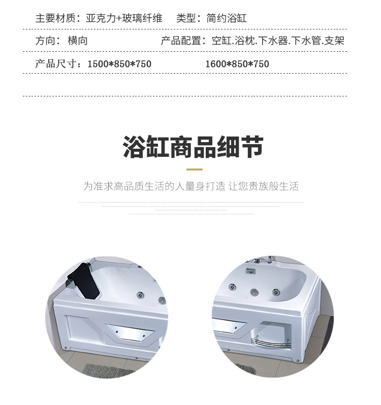 批独立式按摩浴缸美容养生SPA浴池亚克力浴缸户外双人冲浪浴缸波迷娜BOMINA