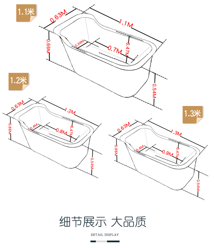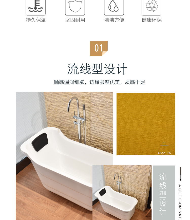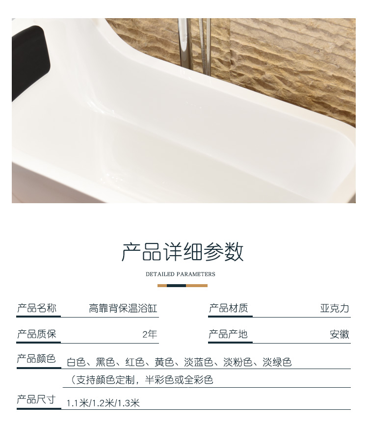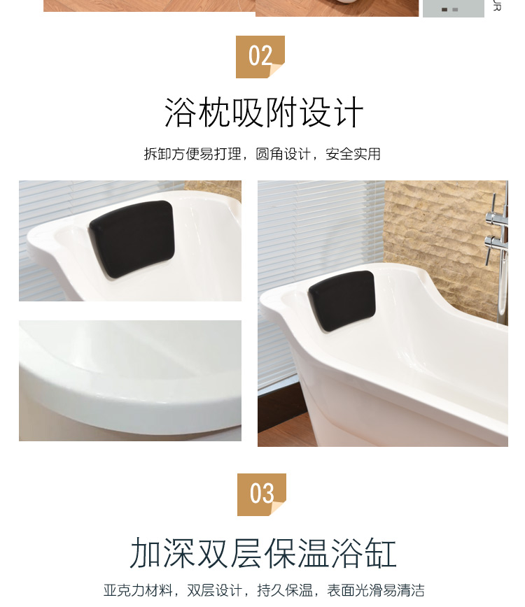 亚克力小户型独立高靠背家用保温小尺寸泡澡浴缸63公分宽波迷娜BOMINA