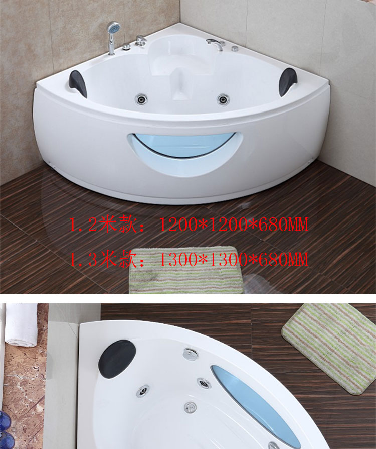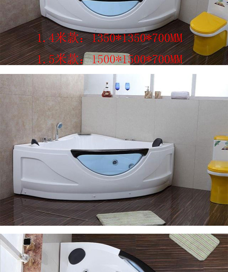 浴缸三角形扇形双人家用情侣冲浪按摩1.2/1.3/1.4/1.5/1.6米波迷娜BOMINA