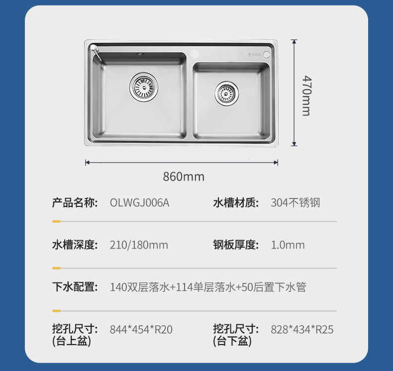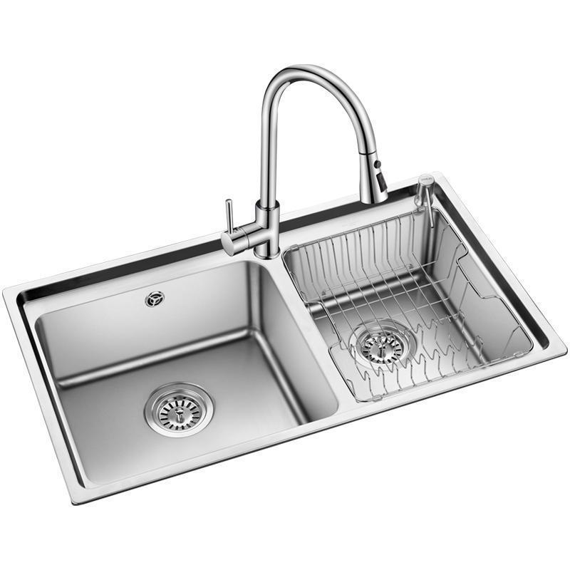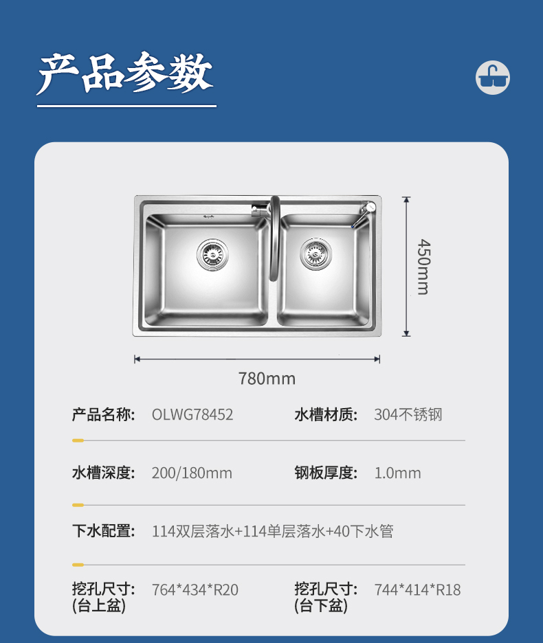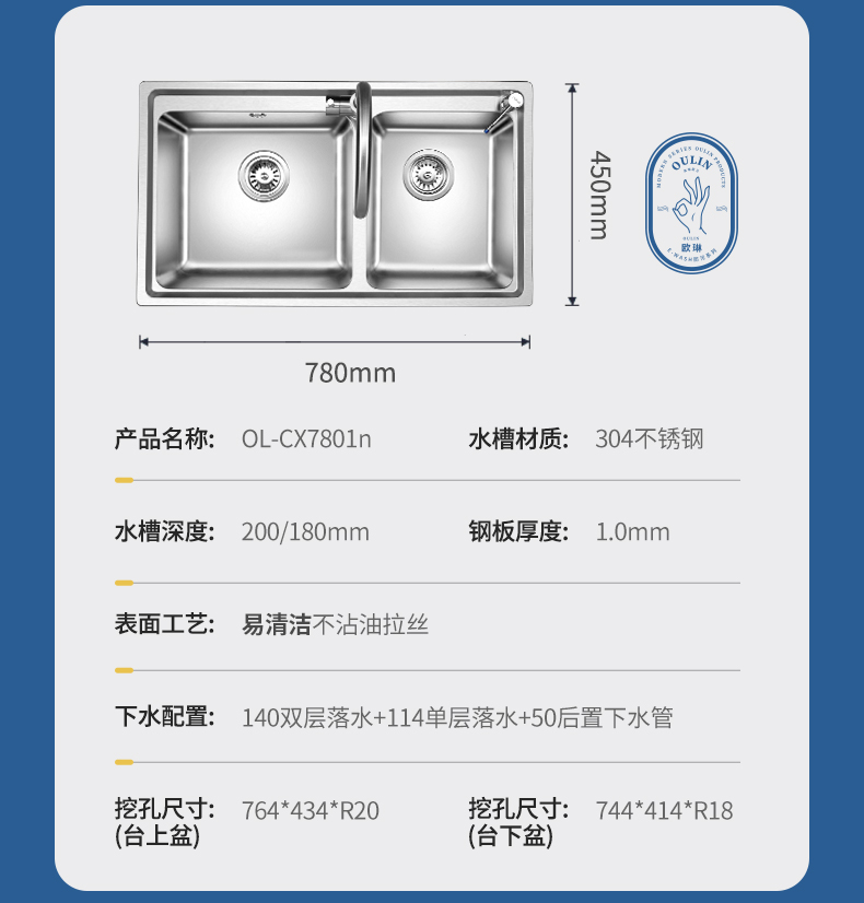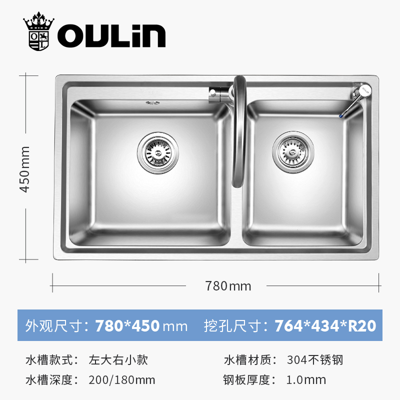 欧琳(OULIN)厨房水槽双槽套餐78452 304不锈钢洗菜盆 水盆加深加厚水池洗碗池