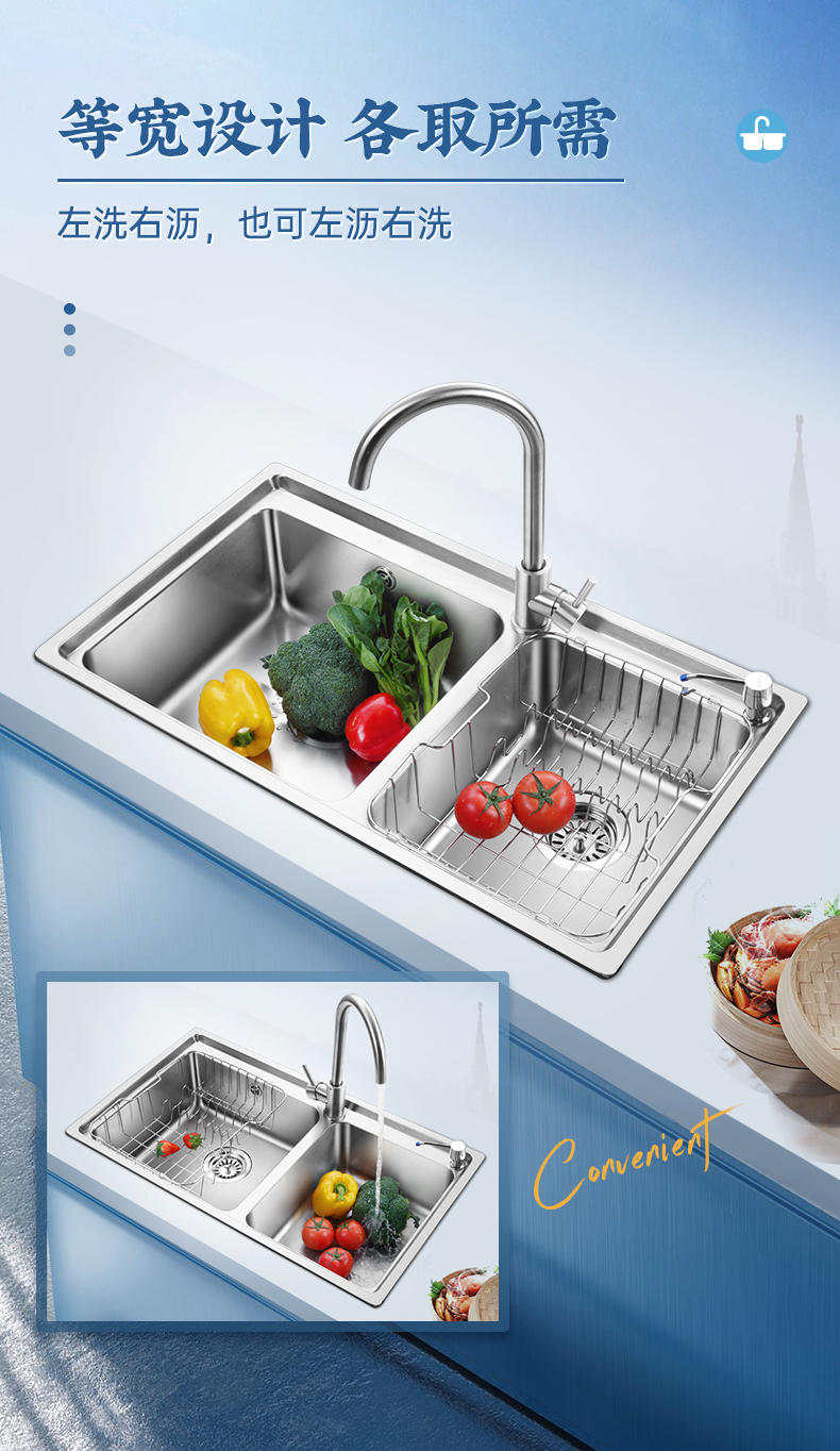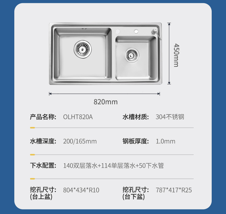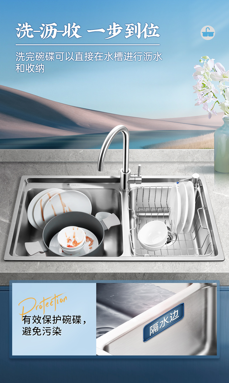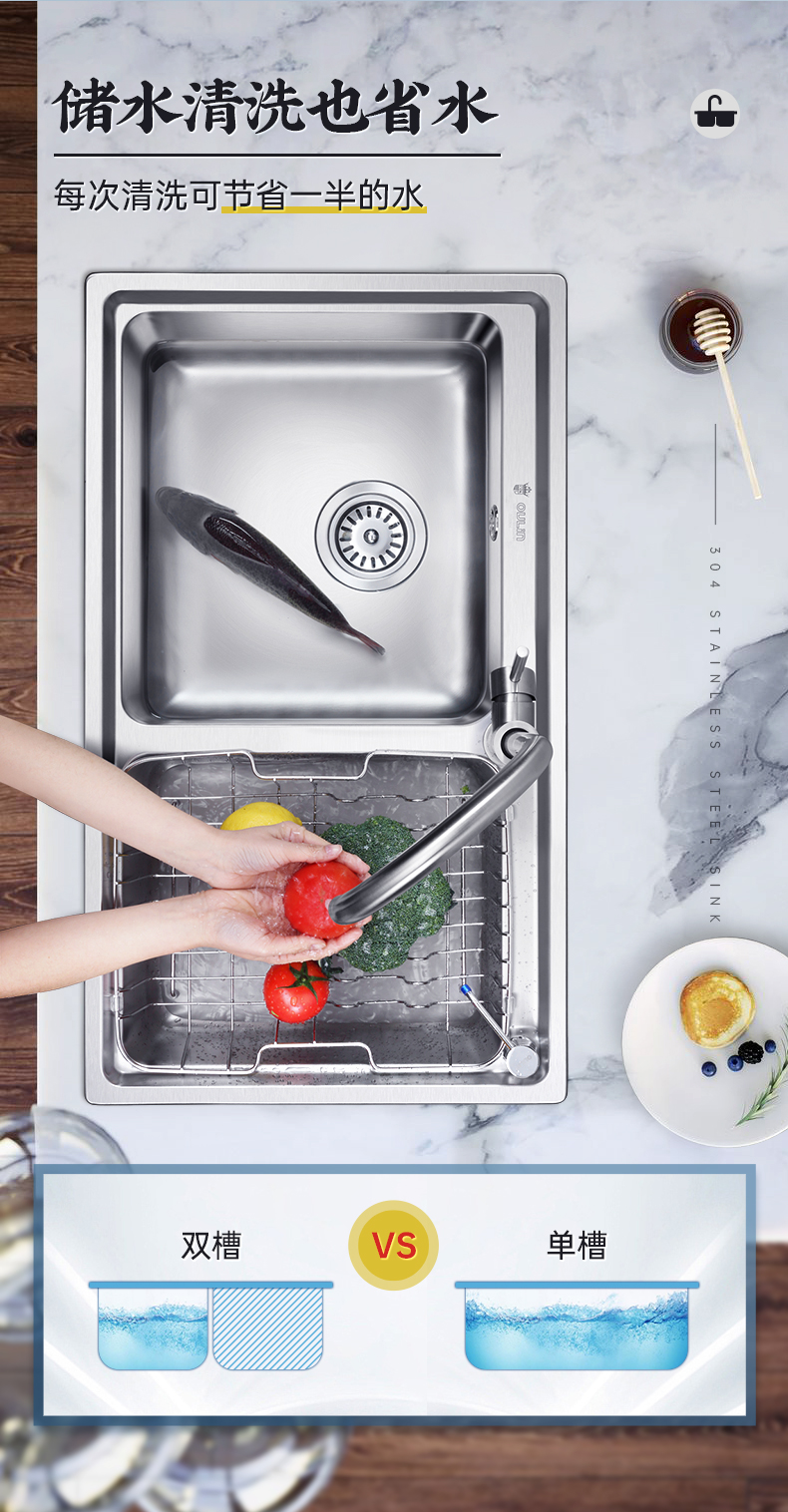 欧琳(OULIN)厨房水槽双槽套餐78452 304不锈钢洗菜盆 水盆加深加厚水池洗碗池
