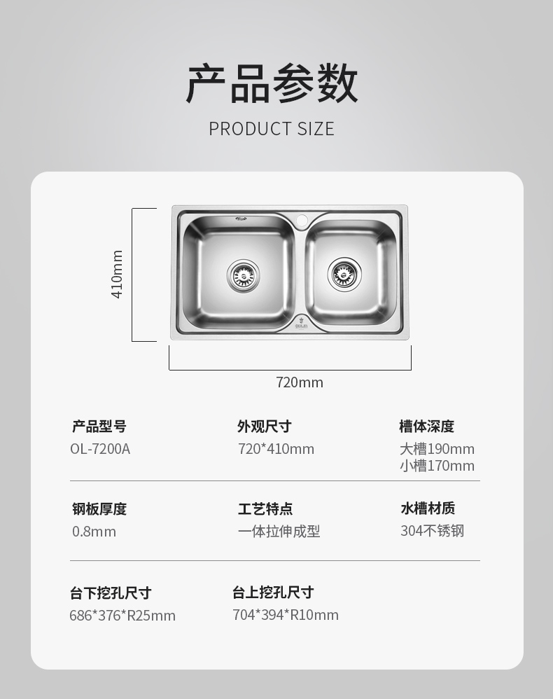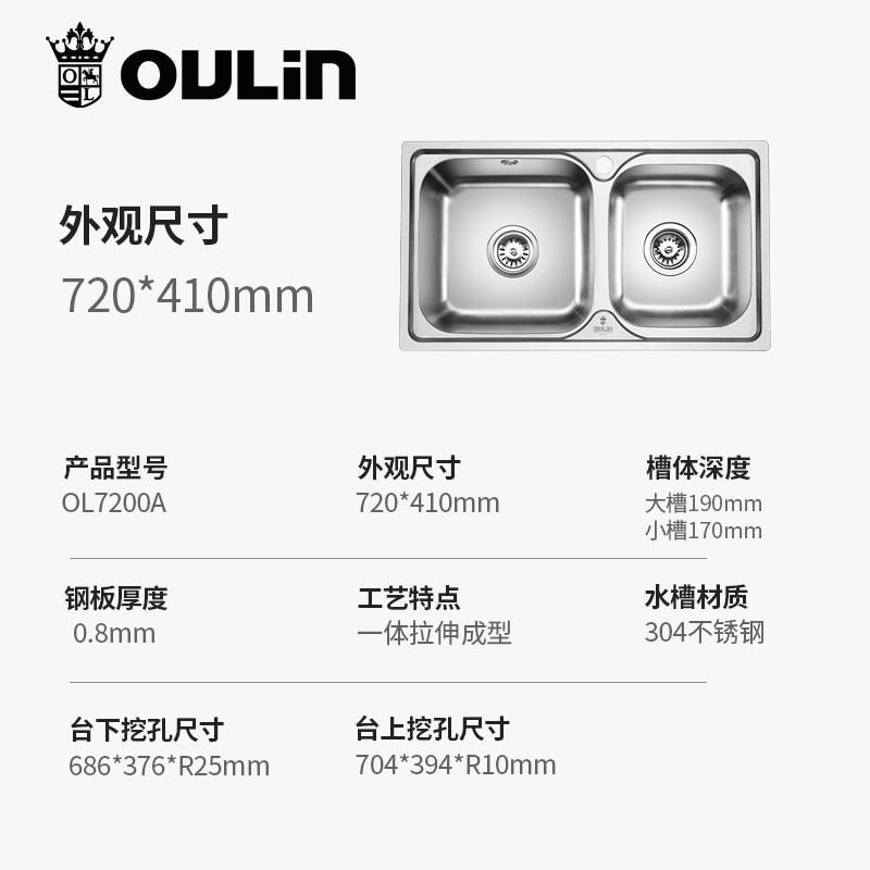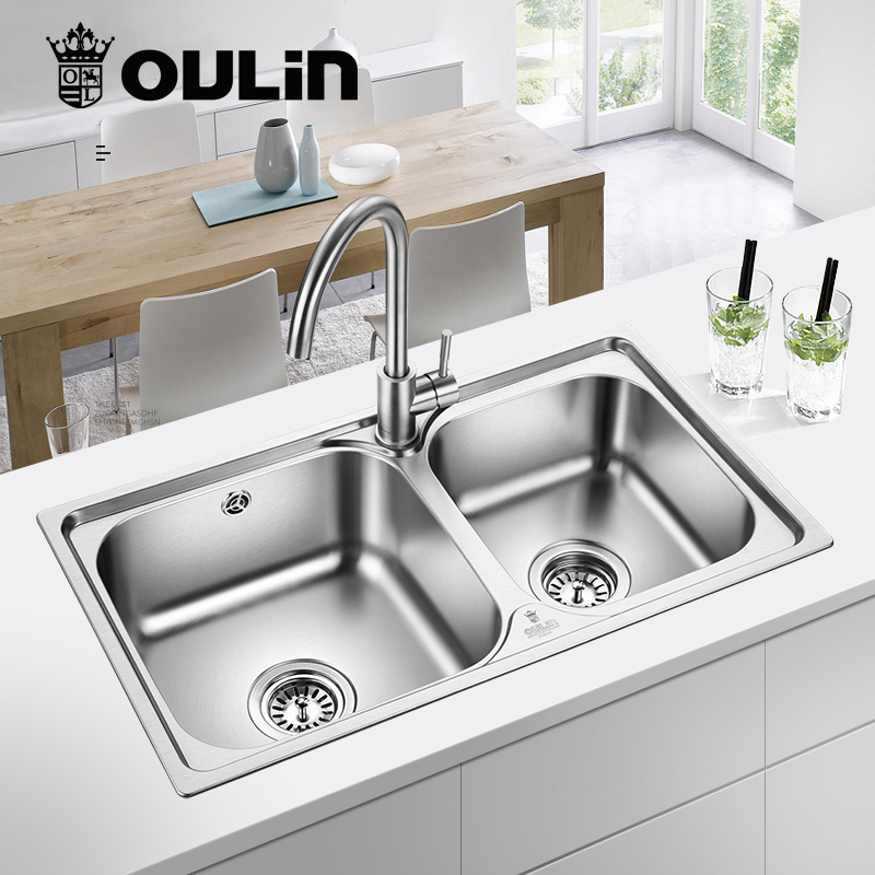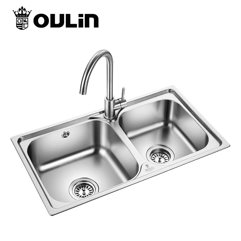 欧琳OULIN 水槽双槽套装7200A含龙头 304不锈钢厨房洗菜池洗碗盆