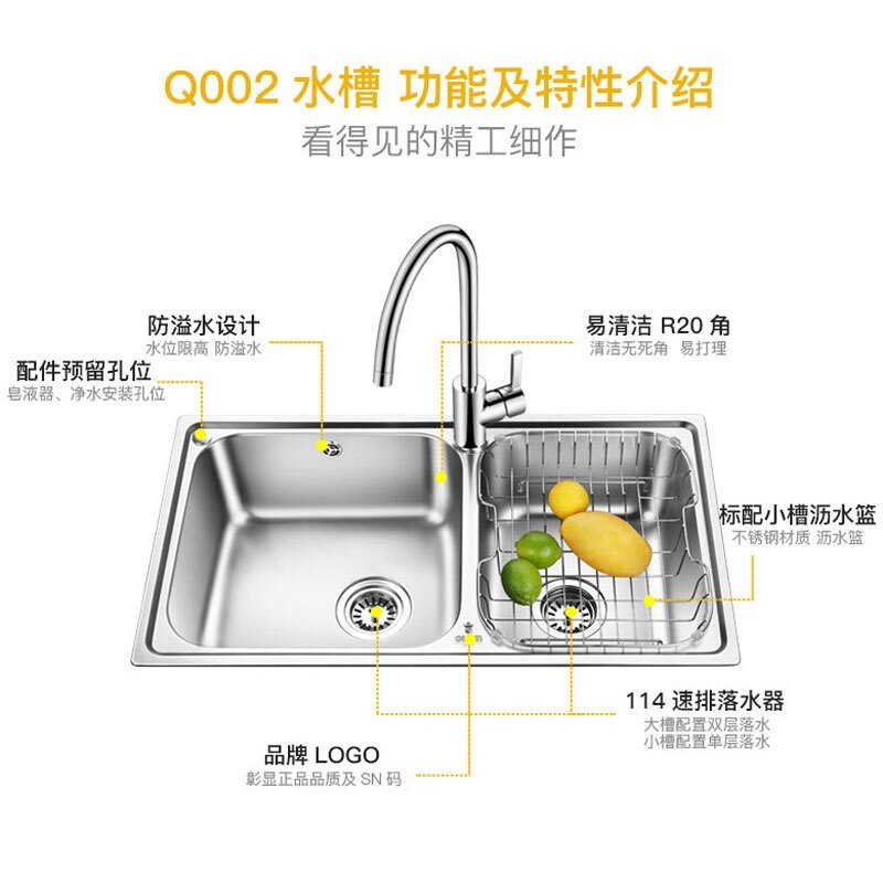 欧琳水槽水槽双槽810*450mm洗菜盆304不锈钢厨房洗菜池台上台下盆81450(零售云)