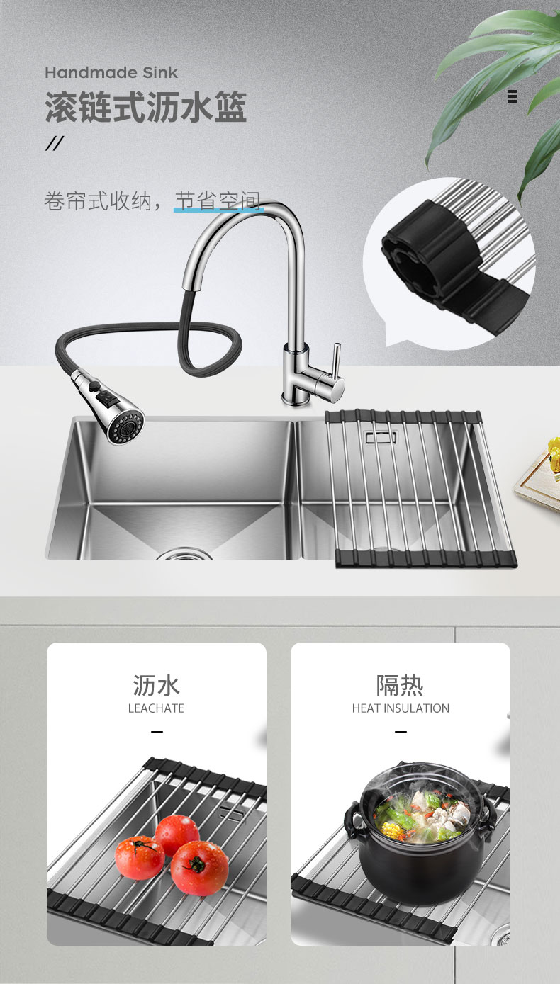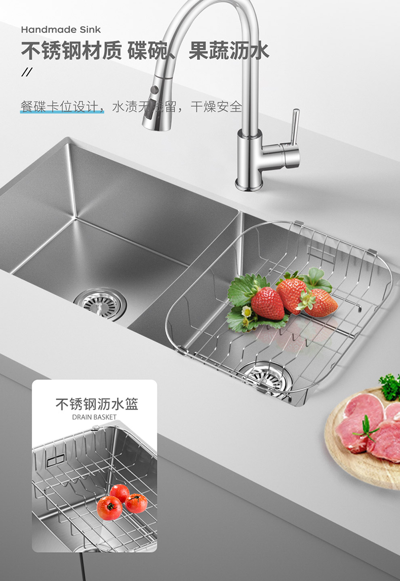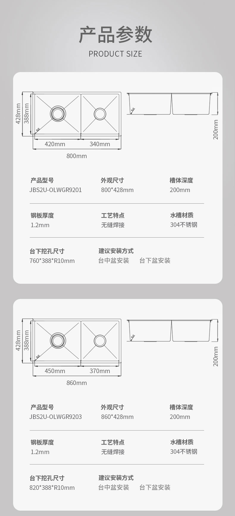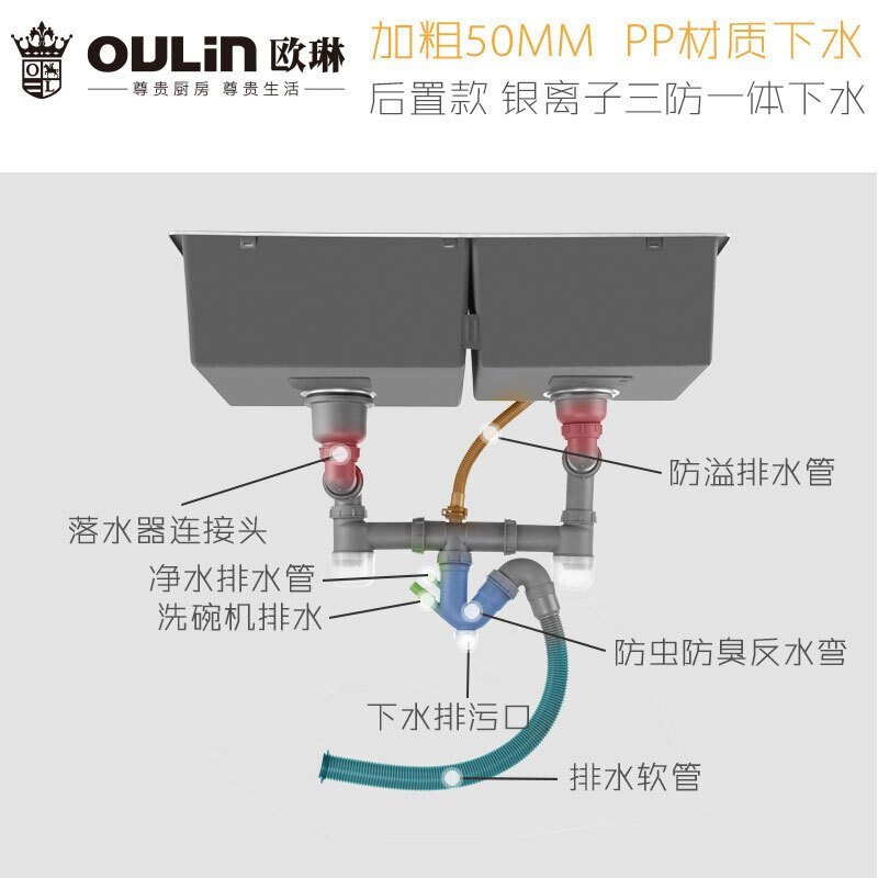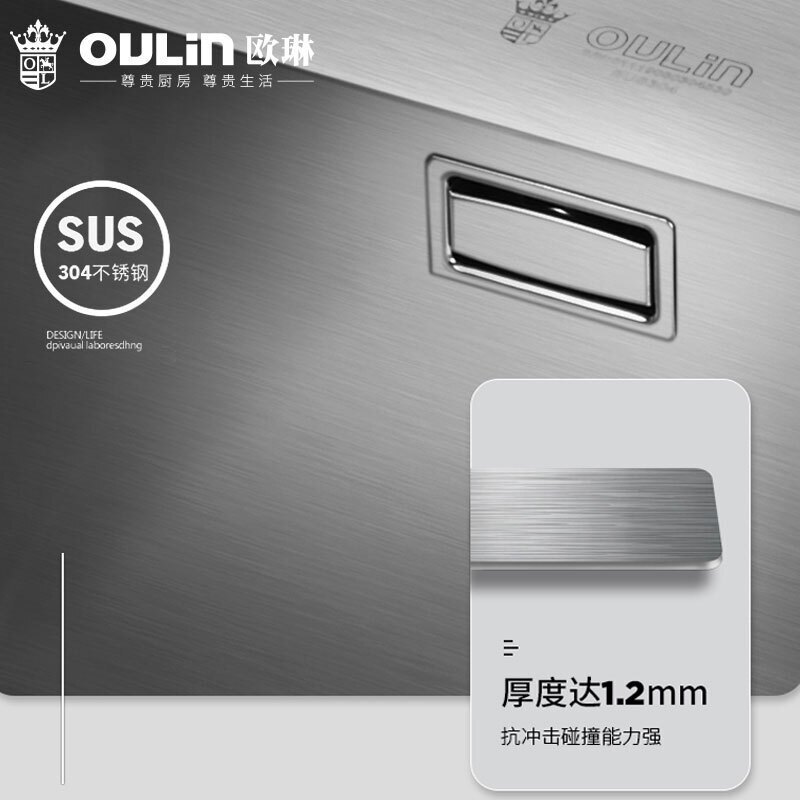 欧琳水槽手工水槽800*428台下盆双槽1.2加厚304不锈钢手工双槽厨房洗菜盆水池9201 800mm槽体配精