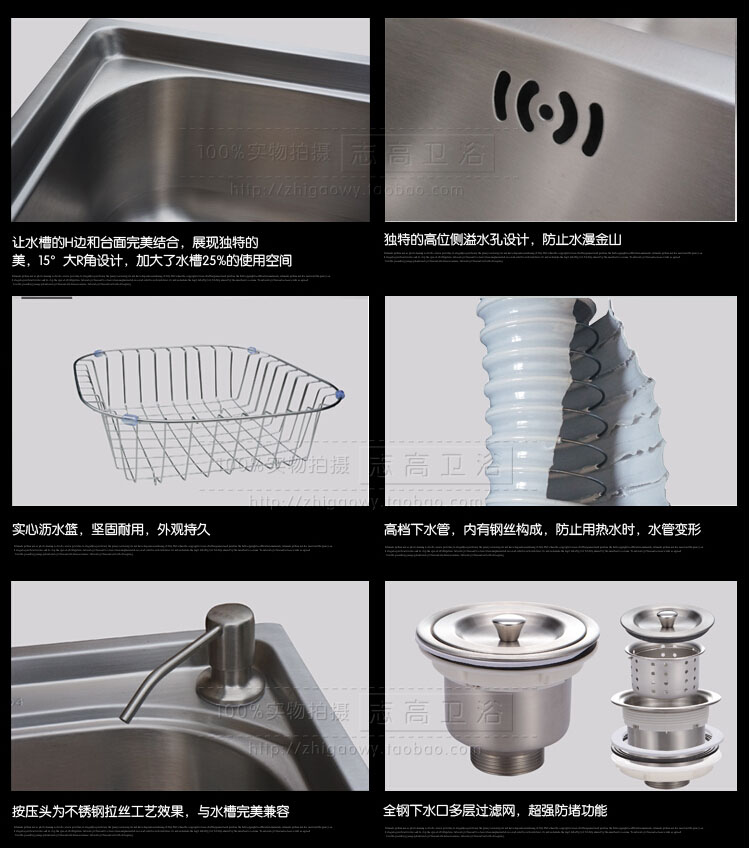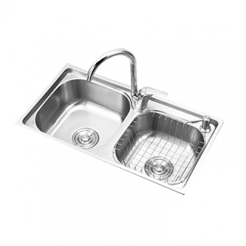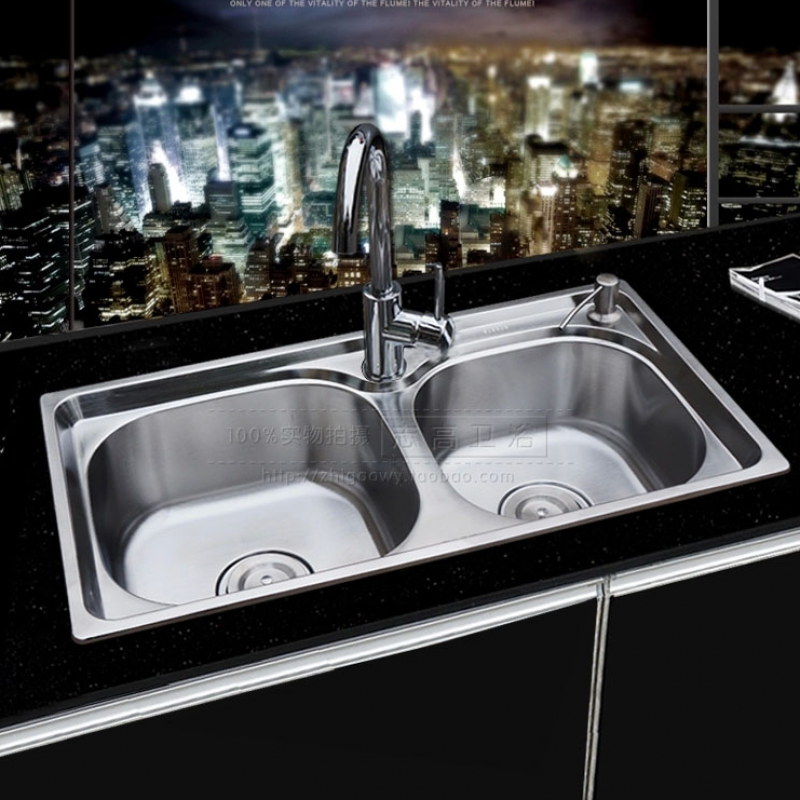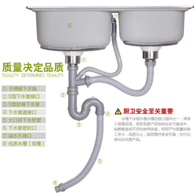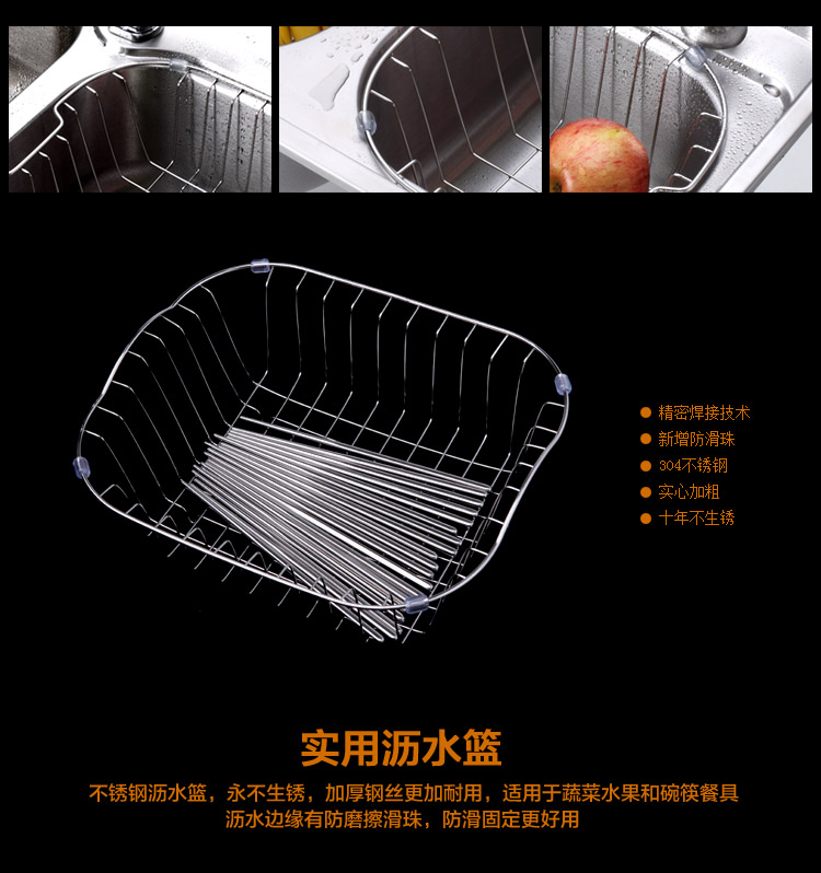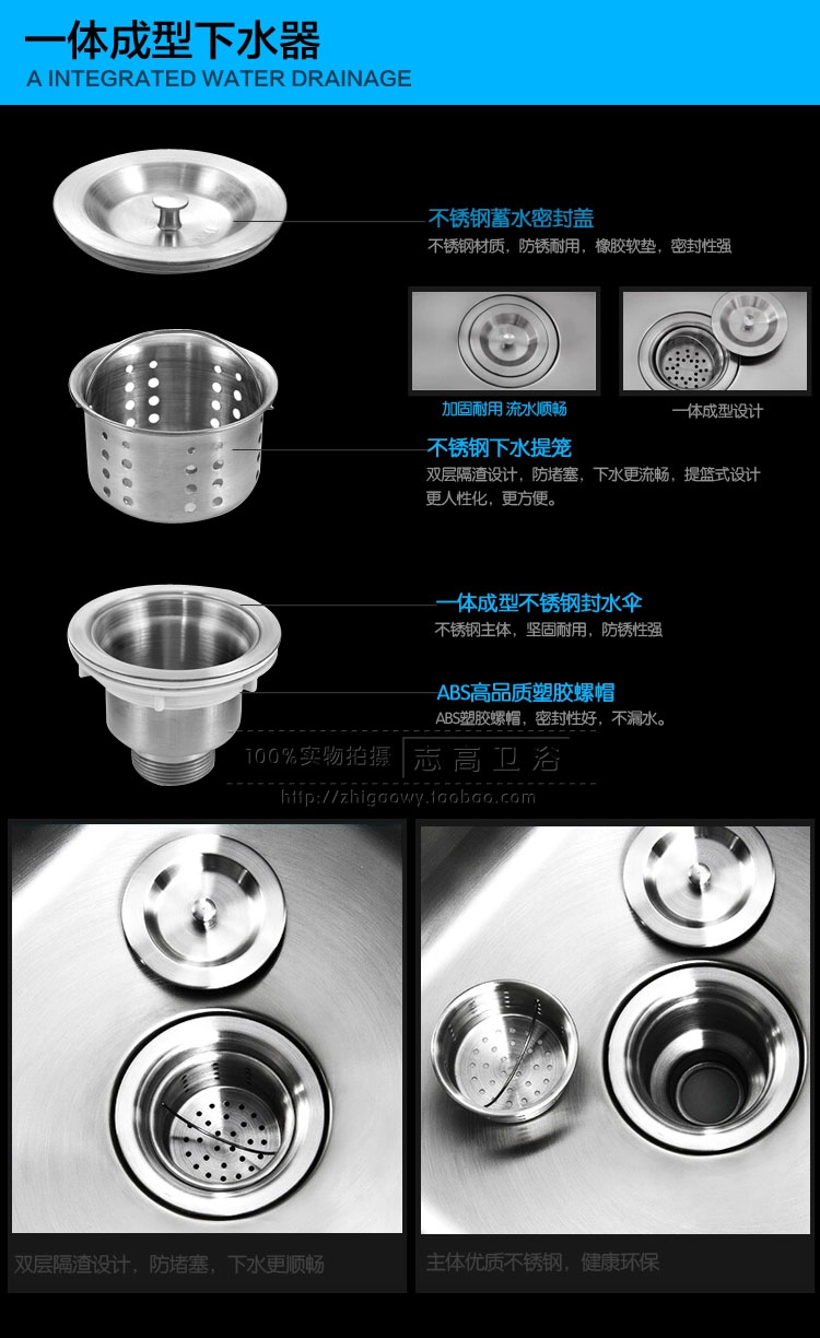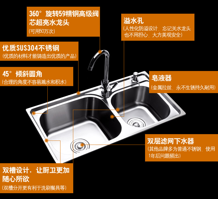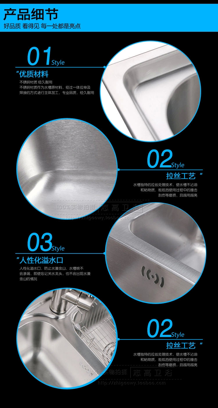 欧琳水槽大双槽一体拉伸304不锈钢水槽厨房洗菜盆洗碗池后置落水孔J006 配001不锈钢龙头