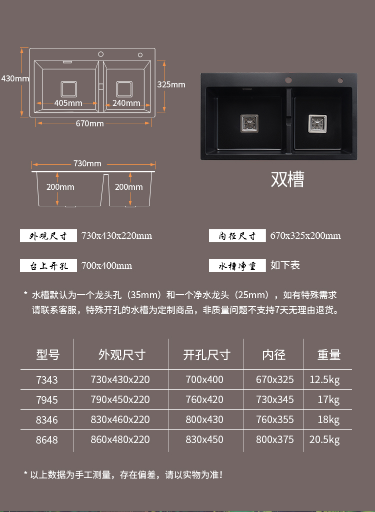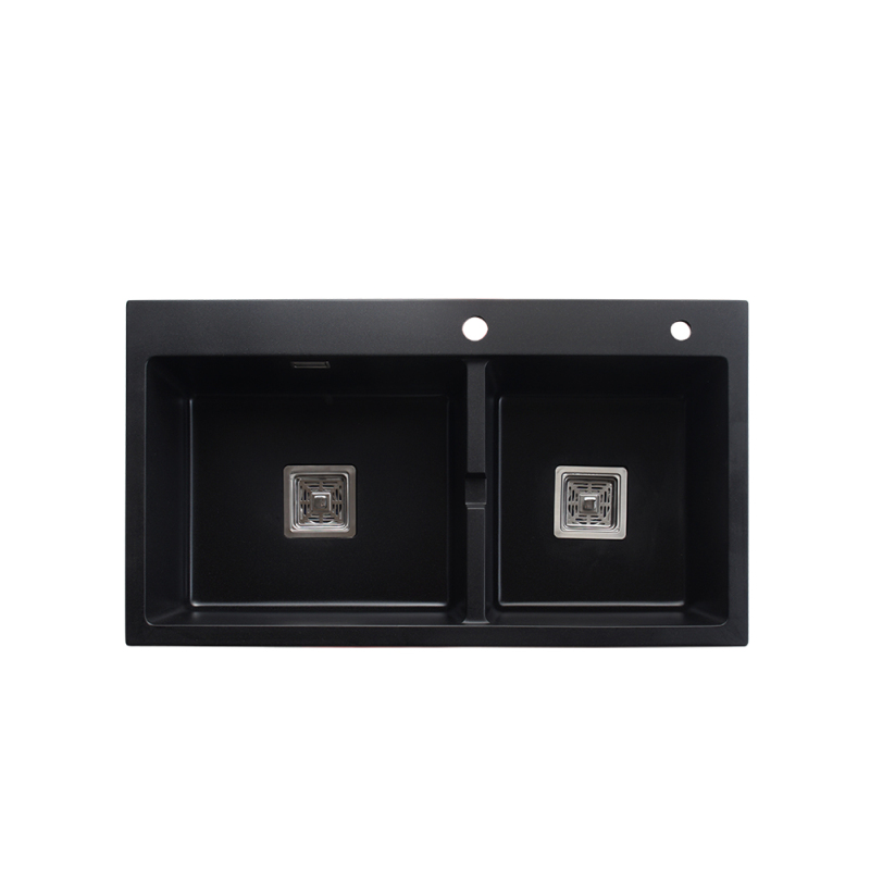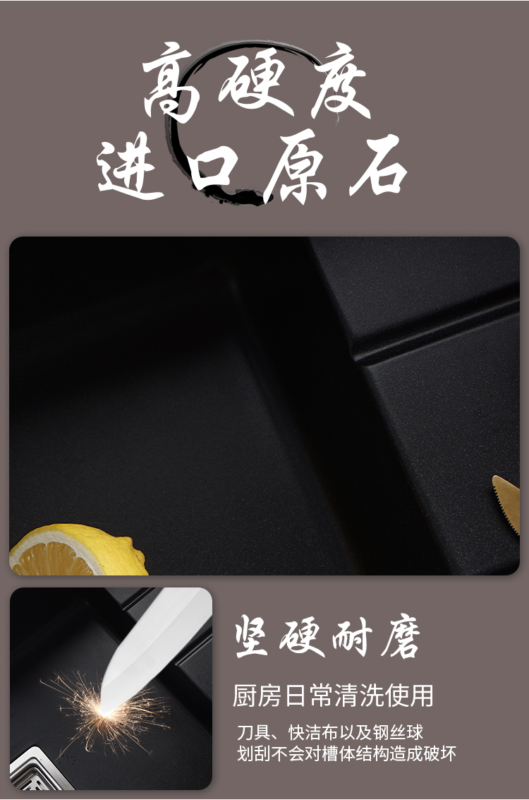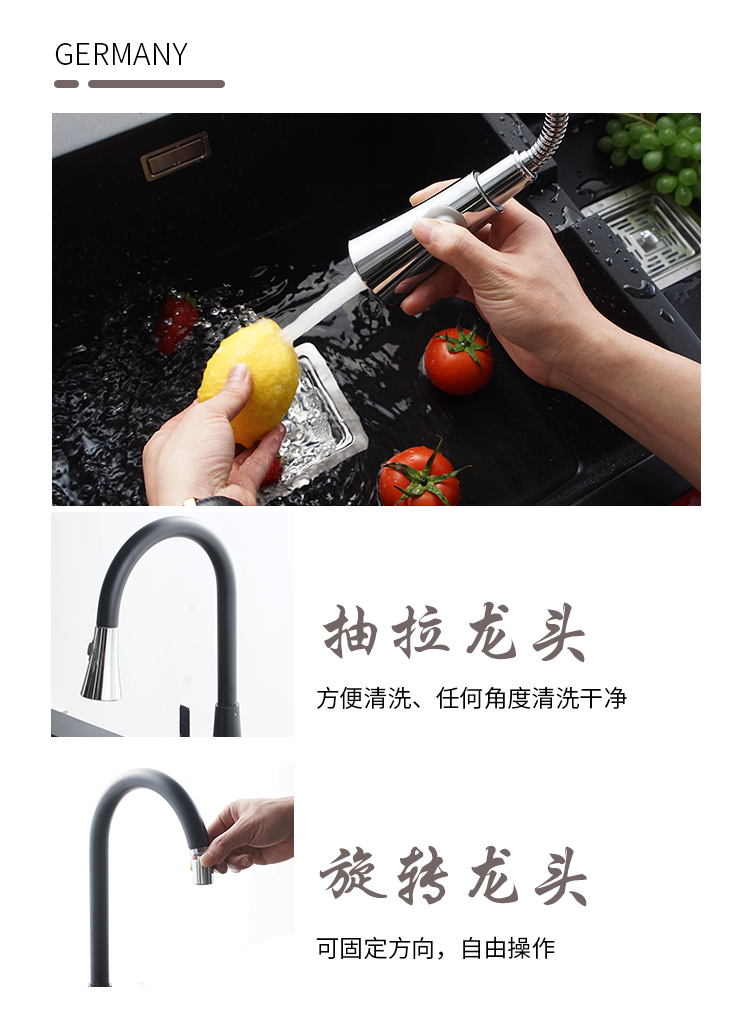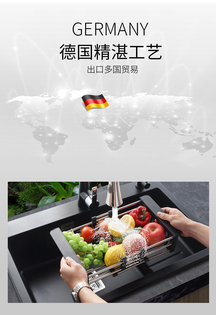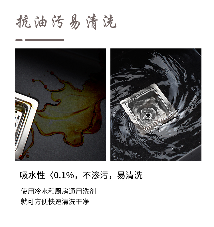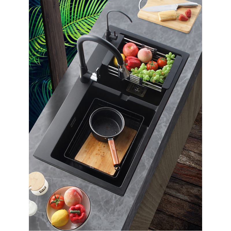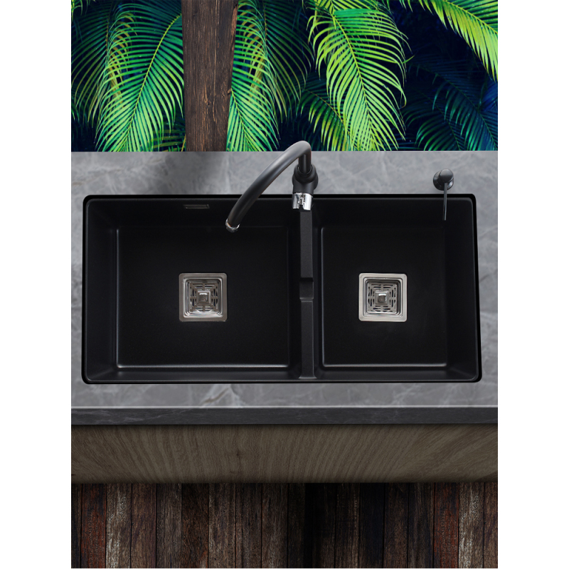 卫浴黑色大双槽石英石水槽厨房水槽洗碗洗菜盆台上台下盆套餐