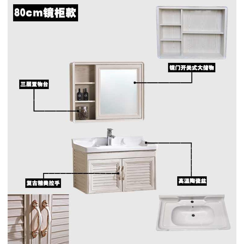 阳台洗衣机组合柜不锈钢卫浴卫生间洗漱浴室柜柜洗脸盆洗漱柜带台盆浴室 白木纹40X60单镜子波迷娜BOMINA 默认颜色 默认尺寸