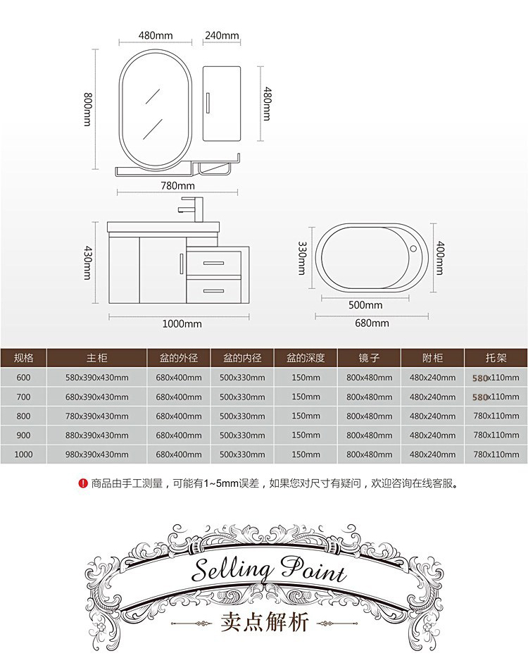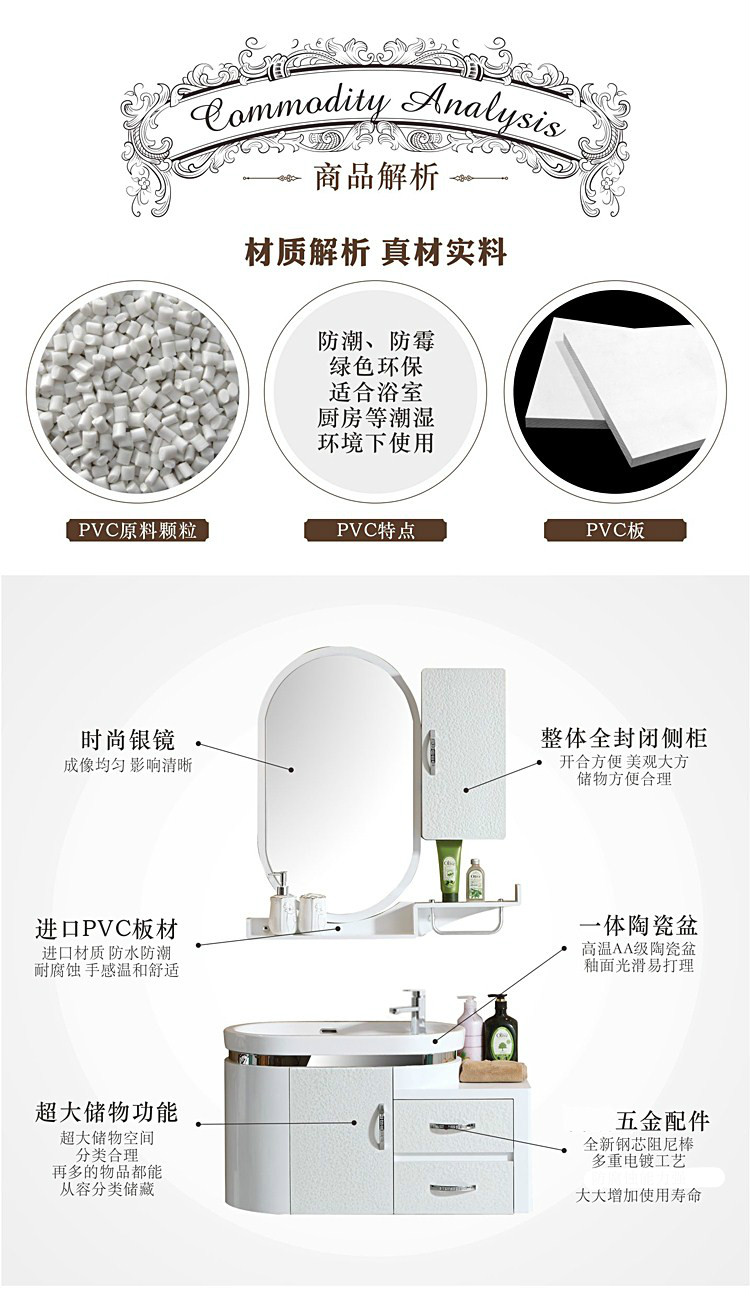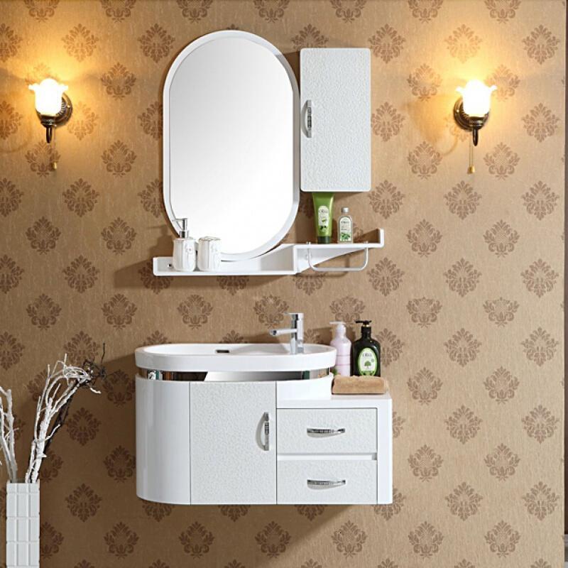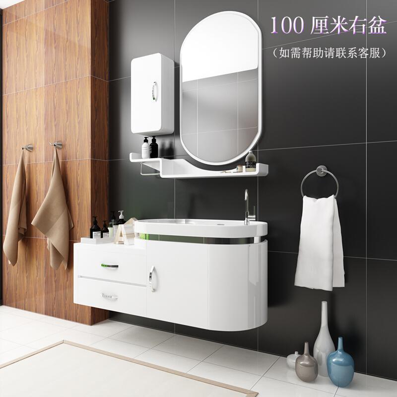 整体洗漱PVC浴室柜窄洗手台盆柜组合卫浴柜洗脸盆柜组合圆弧洁具1米(右盆带抽屉)61cm(含)-90cm(含)
