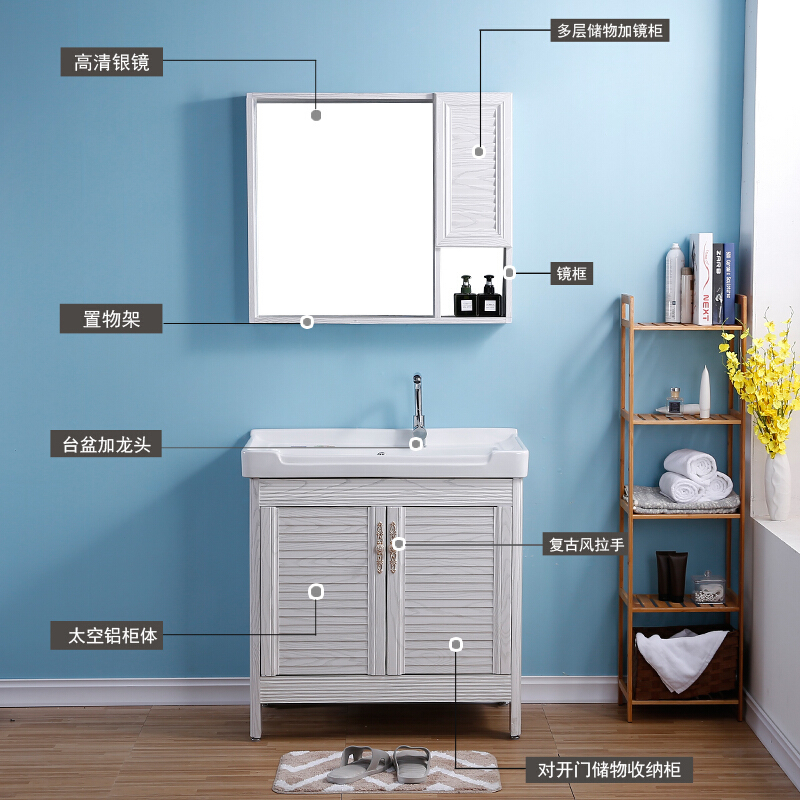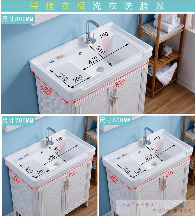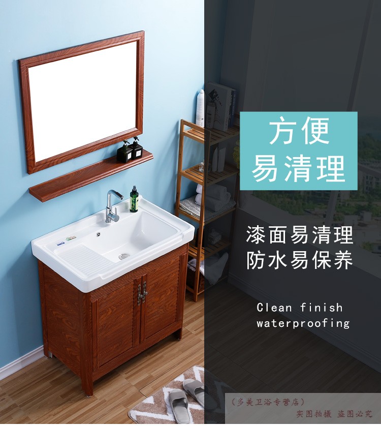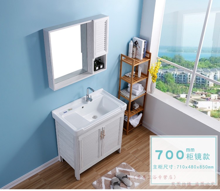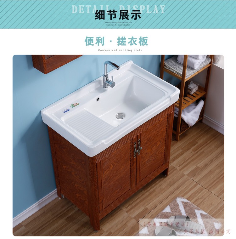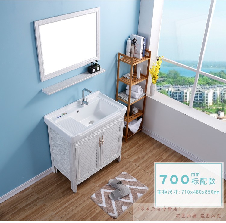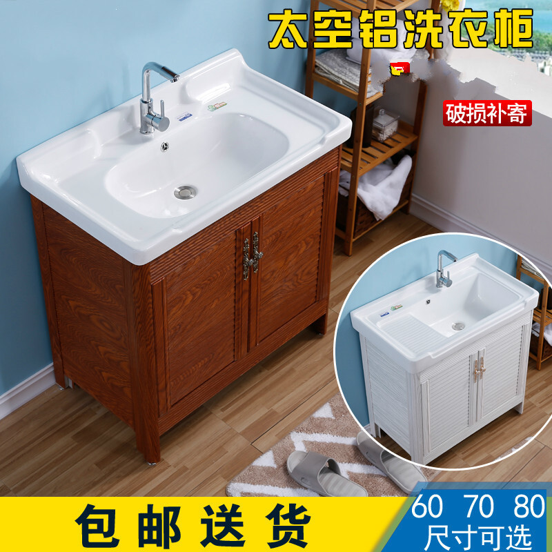 陶瓷洗衣盆太空铝落地浴室柜洗脸盆洗衣池带搓衣板水阳台卫生间波迷娜BOMINA