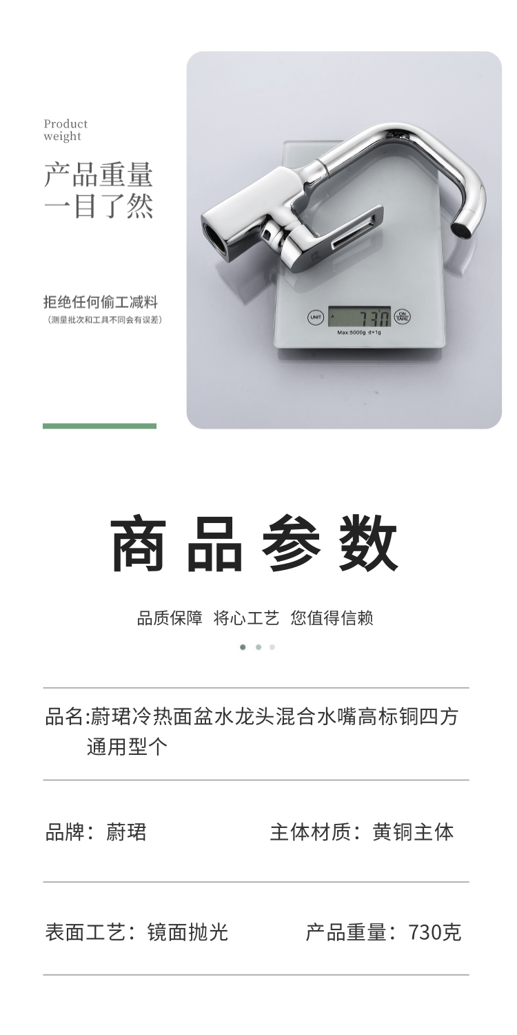 蔚珺冷热面盆水龙头混合水嘴高标铜四方通用型个