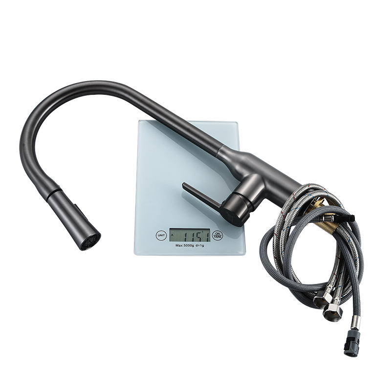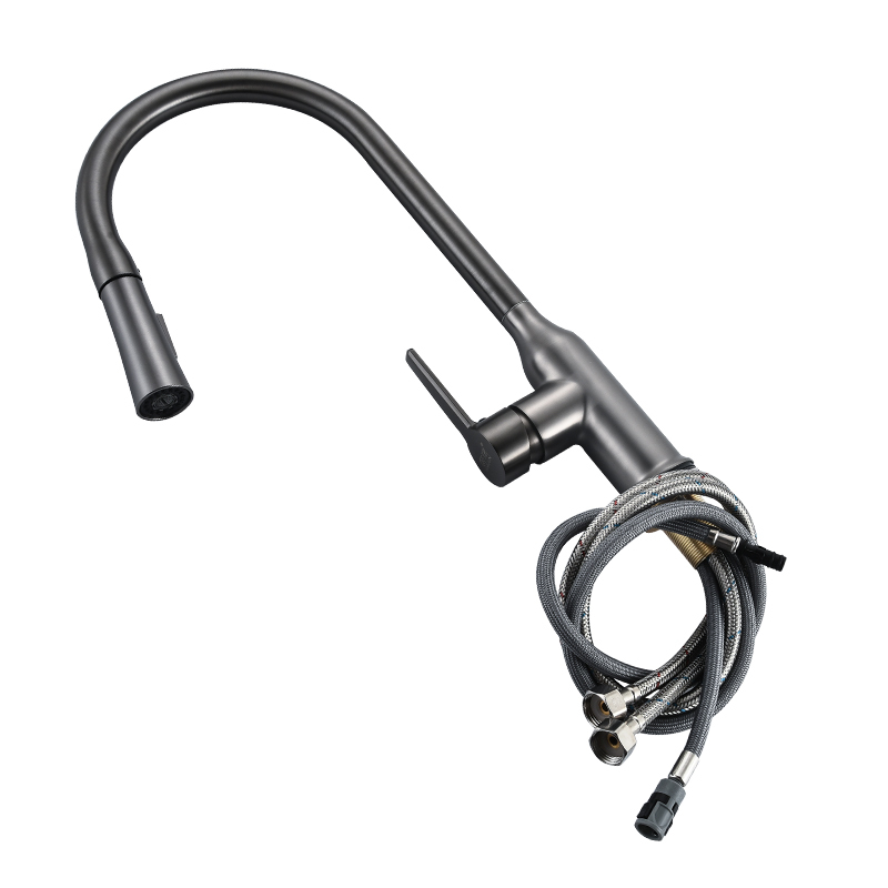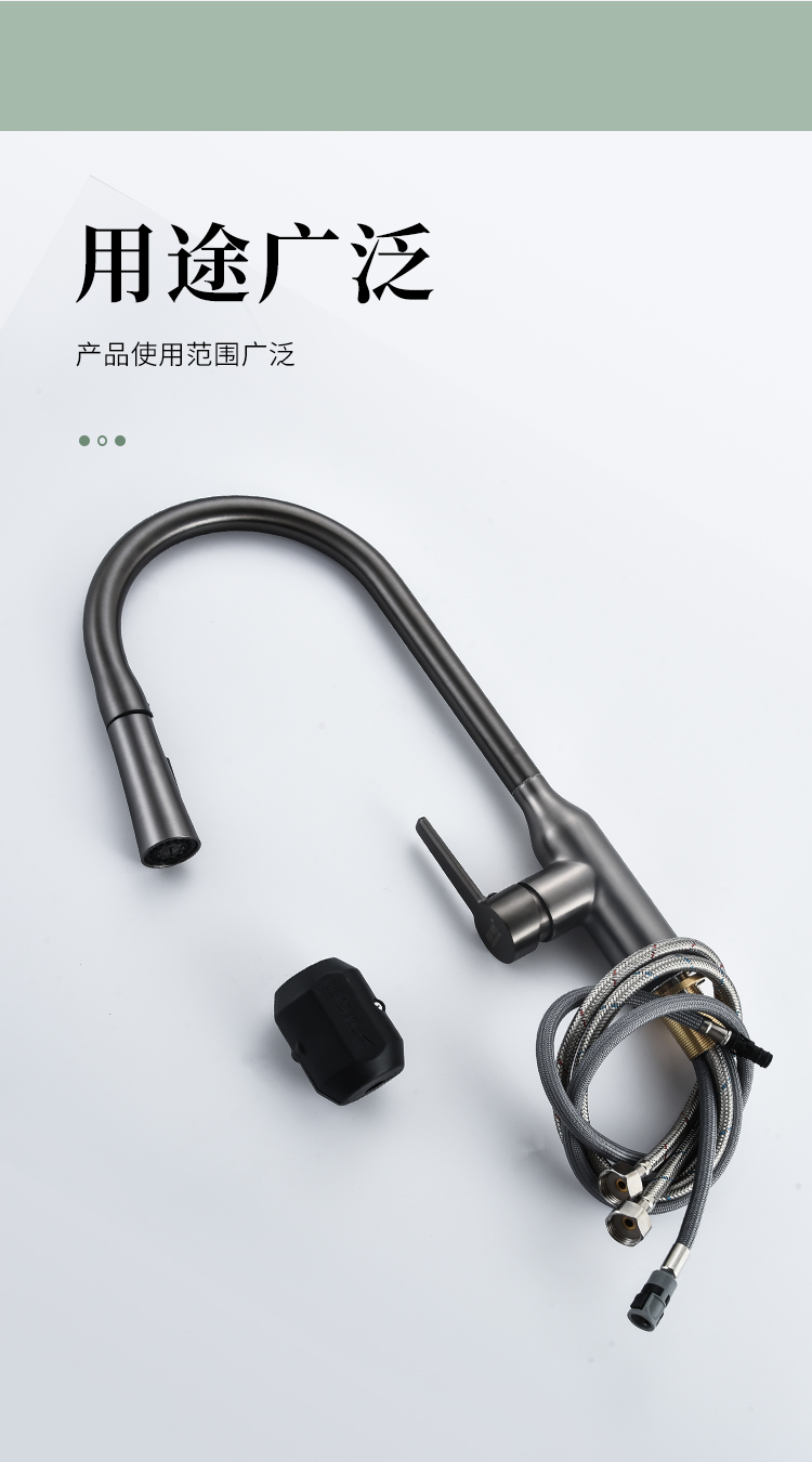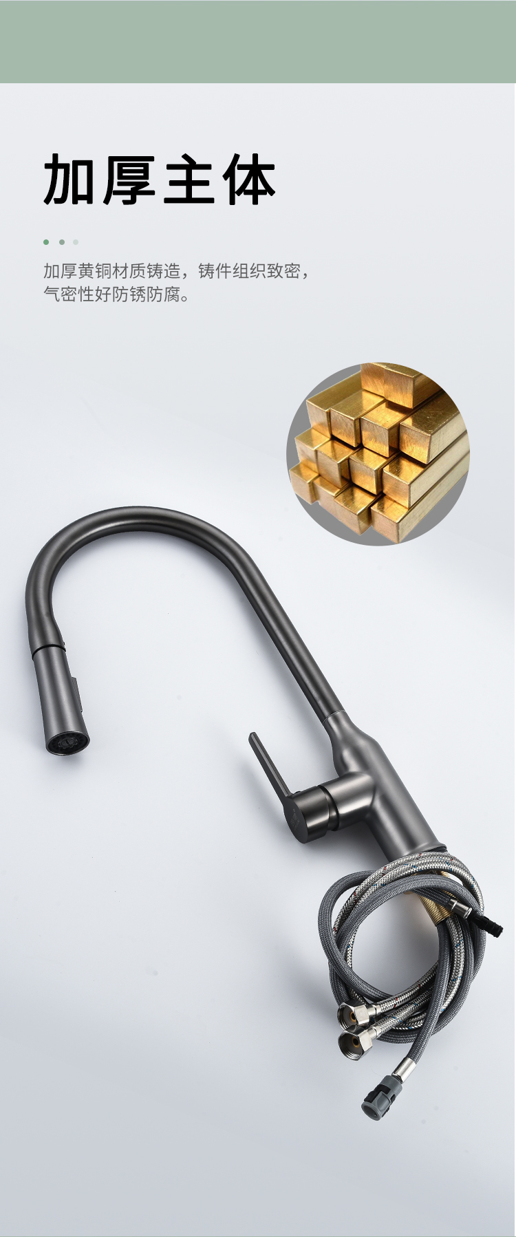 蔚珺全铜枪灰冷热混合大弯抽拉水龙头通用型个
