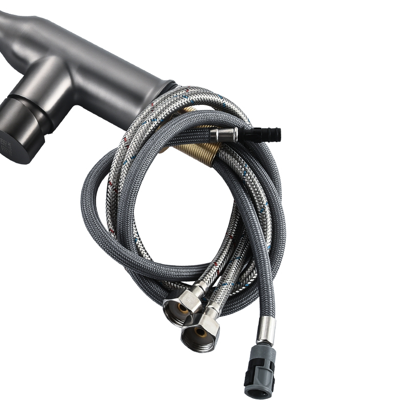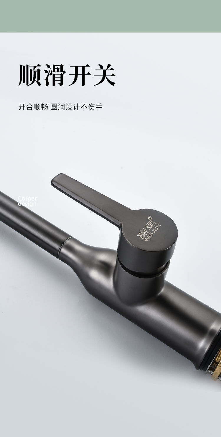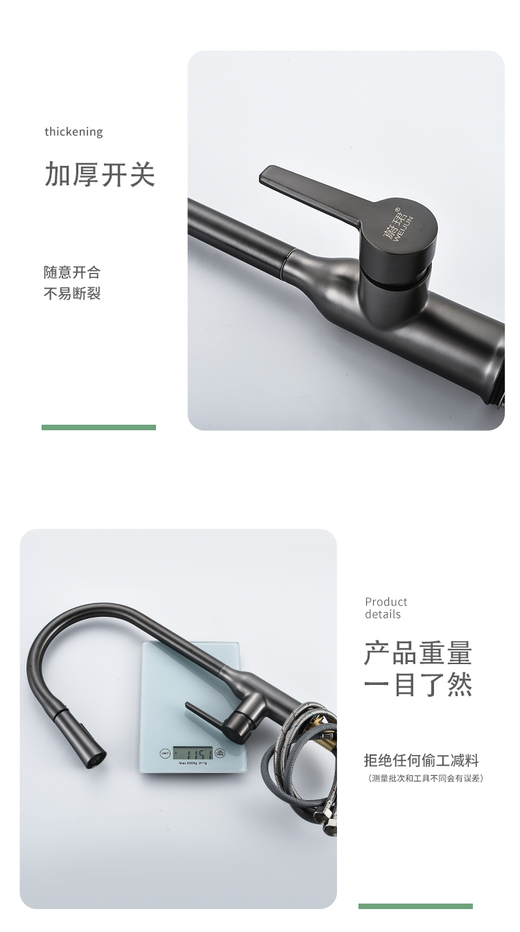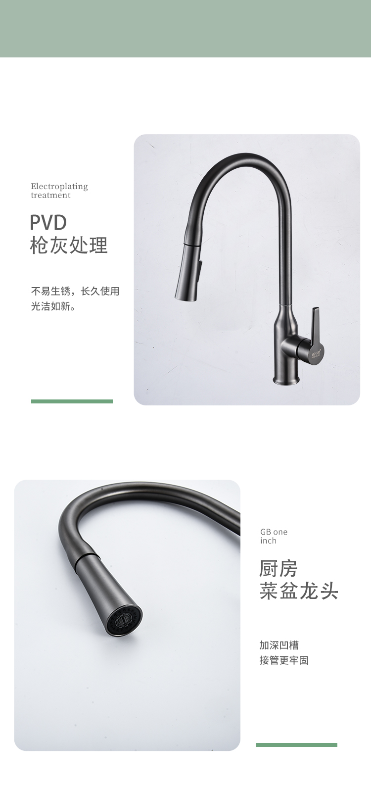 蔚珺全铜枪灰冷热混合大弯抽拉水龙头通用型个