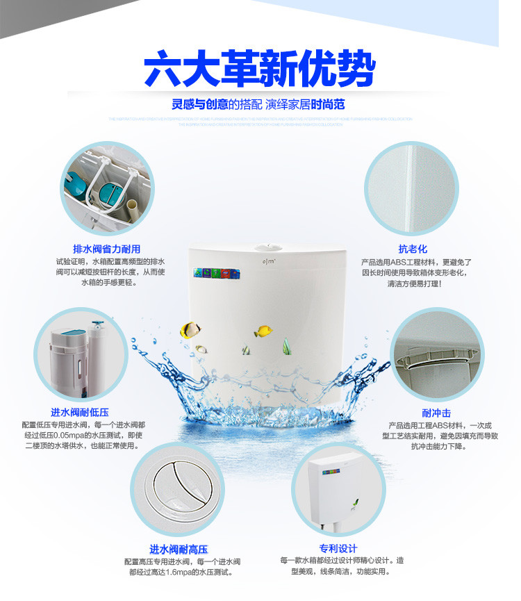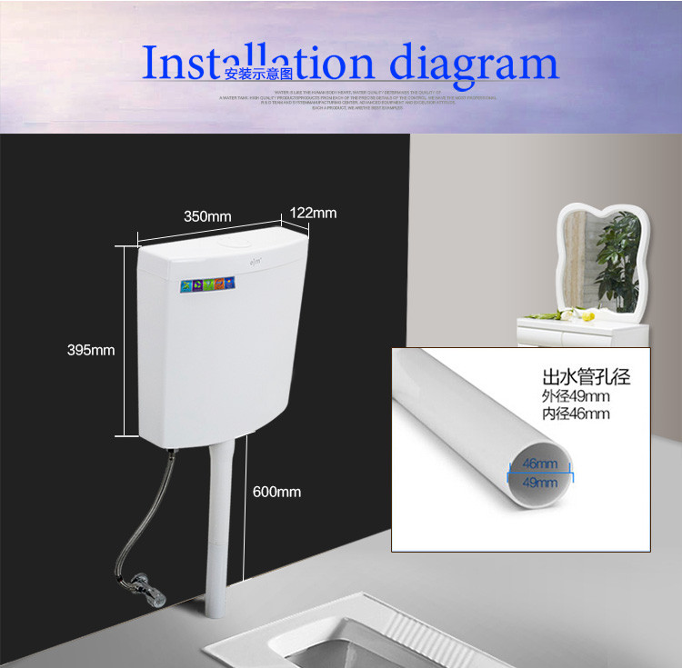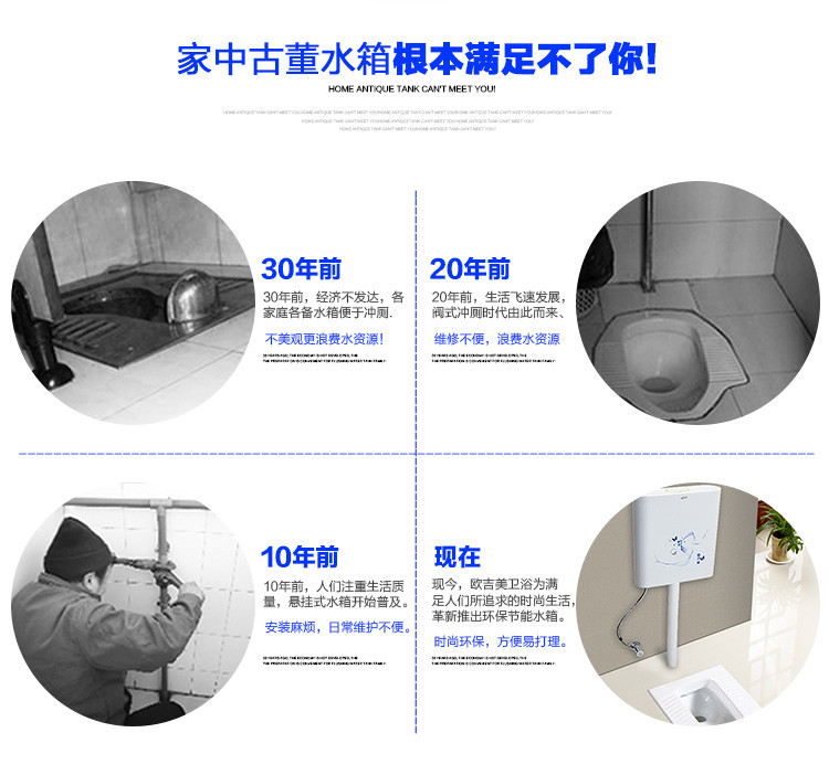 欧吉美 蹲便器水箱 大容量卫浴冲水箱 蹲便厕所挂壁式水箱 节能冲水箱 OJM-05