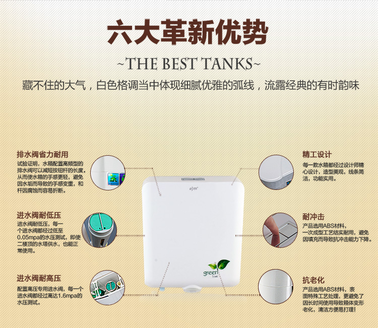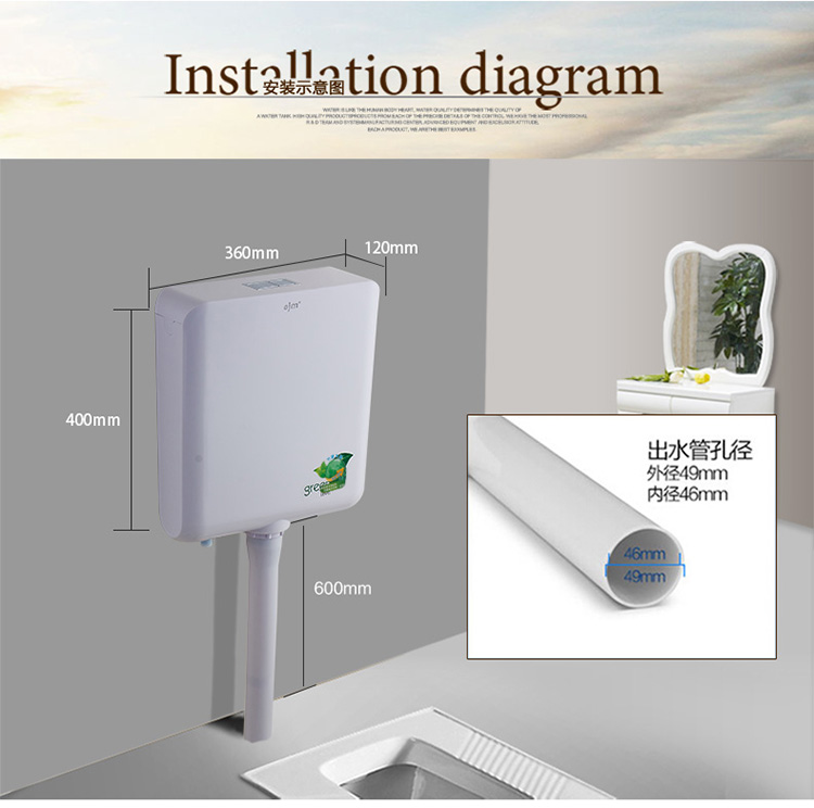 欧吉美 新品蹲便器卫浴冲水箱双按节能蹲坑大便池冲水器 OJM-019水箱(不含角阀及进水管)